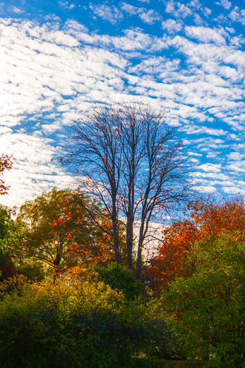 Left over leaves on the tree with colorful trees around in Arboratum, Ottaw