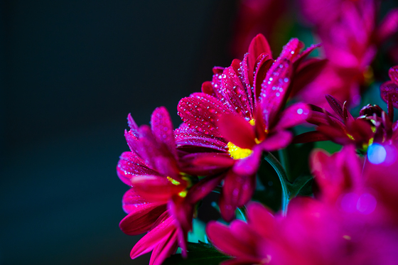 On a sunny morning with dew drops on these beautiful colorful flowers