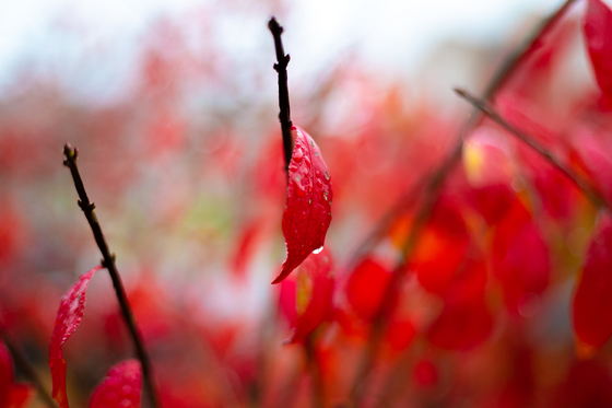 Rain drops on red leaves