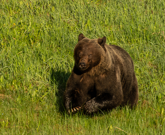 A Grizzly Bear runs after a smaller bear in the Spring breeding season.