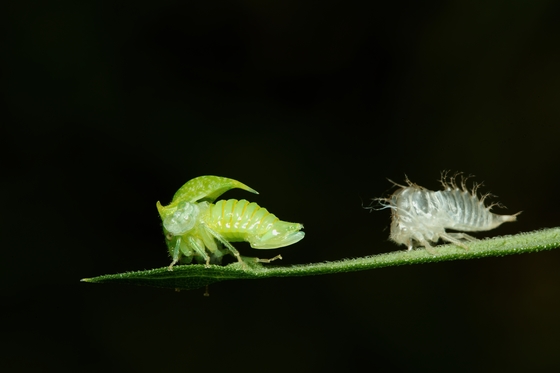 Wandering through the forest you sometimes get lucky. I found this treehopper just as it had emerged from its nymphal stage.