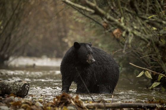 A black bear tries to locate salmon as it puts on weight for the coming winter.