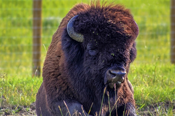While out looking around for bison at Elk Island, I came across this lone bison lounging in the grass.