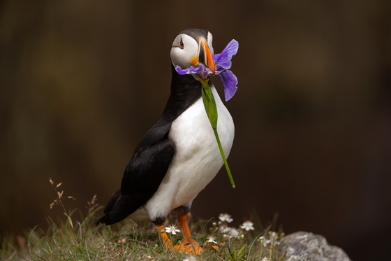 Atlantic Puffin gathering nesting material in NFLD.
