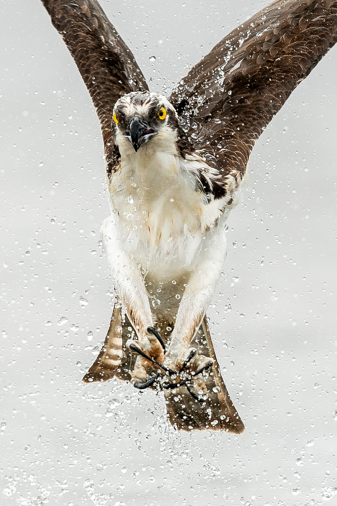 Osprey in Nova Scotia makes the dive but comes up without the fish. Great Splash though.