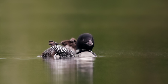 Loon and her chick drifting the afternoon away. Taken in Nova Scotia