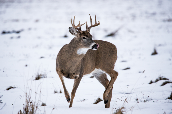 I saw this Whitetail walking towards me from across a field this November. So naturally I sat still with my camera and waited quietly to see how long until he noticed me. The young deer got about 50 yards away before it started to suspect something, turned 90 degrees, and started walking to my left. They are pretty brave during the rut.