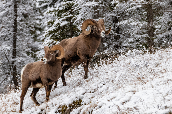 Jasper National Park has been one of my favorite places to visit since i was young. You get opportunities to see mountain wildlife you would otherwise have a very hard time seeing. These 2 sheep were eating grass above all the other herd members before running down the hill full speed .