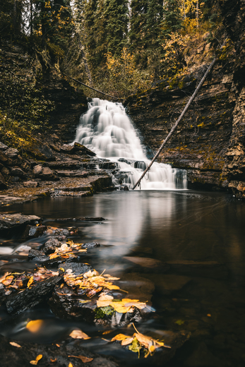 This waterfalls is a few km hike from the highway in Tumbler Ridge Global Geopark area of BC. This photo was taken this autumn right before the first snowfall of the season!