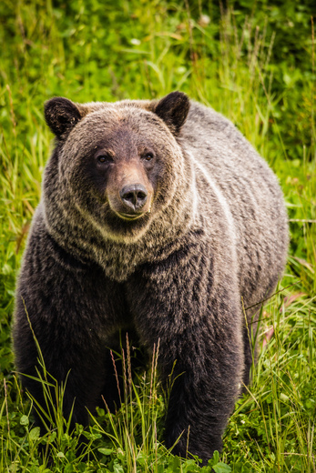 This Grizzly Bear took a second to lift its head from mowing down some greens this fall 2019. Near Hinton AB, this bear was running around this field like a lawn mower trying to bulk up for the upcoming winter!