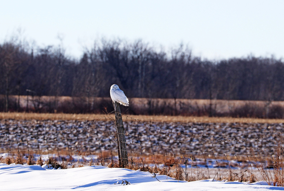 I asked my husband very nicely to spend a few hours to go for a tour on the country roads north of us to look for Snowy Owls one fine sunny winter afternoon and like the awesome husband he is, he agreed. I need a driver so I can search and he can drive and it worked well. Imagine my delight when the regal Snowy Owl was found perched on a fence post in a farmers field. The Snowy Owl is a sit and wait hunter. Silent and patient it surveys the winter corn field as it hunts during the day, unlike other Owls. There haven't been too many sightings of the Snowy this winter so actually spotting this Arctic beauty between Fergus and Arthur Ontario Canada was thrilling!