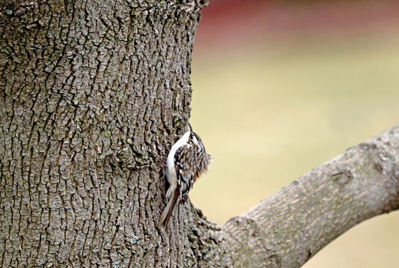 I was quite surprised to see this tiny Brown Creeper that probes into crevices and picks at the loose bark of trees for insects on my Maple tree in the spring. They are fun to watch as the Creepers typically spiral upwards from the bottom of a tree trunk and then fly down to the bottom of another tree or the same tree and spiral up again.