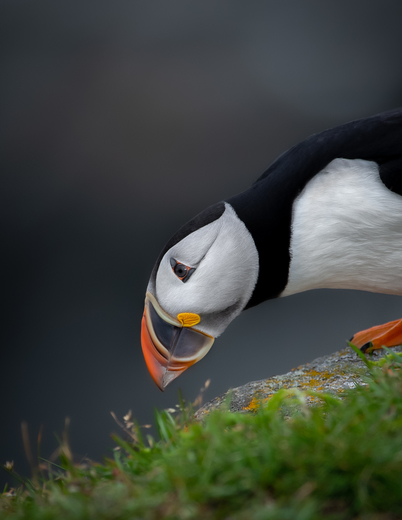 Atlantic Puffin in NFLD looking over the cliff...yikes!