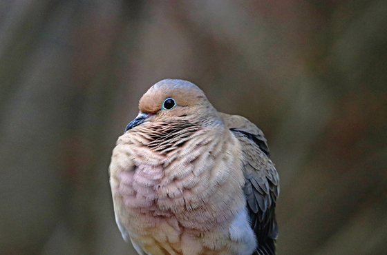 Lovely, trusting Mourning Dove sits pretty on a fence rail in spring in Guelph Ontario Canada and was not averse to me getting real close for an intimate photo.