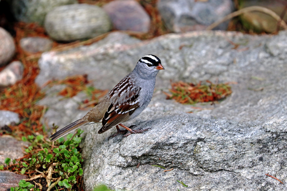 This beautiful, White Crowned Sparrow, Zonotrichia leucophrys, made a stop at my house in Guelph Ontario Canada, on its way to northern Canada where it resides until time to migrate south. The smart black and white head, pale beak and crisp gray breast combine for quite a dashing look.
