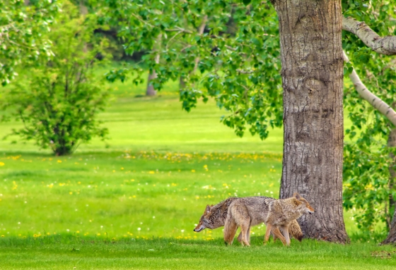 Two coyotes were out sniffing and exploring an Edmonton park in the summer.