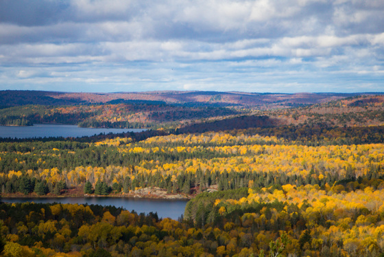 After the red Maple leaves fell from the trees, it gave a chance for the strong yellow colour to take the stage. Here is a photo of the fall trees in mid-October in Algonquin Provincial Park.