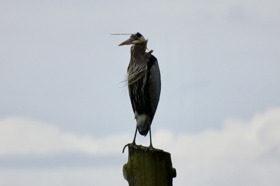 Well visiting Vancouver island, I spotted this heron on top of a pole, feathers fluttering in the wind
