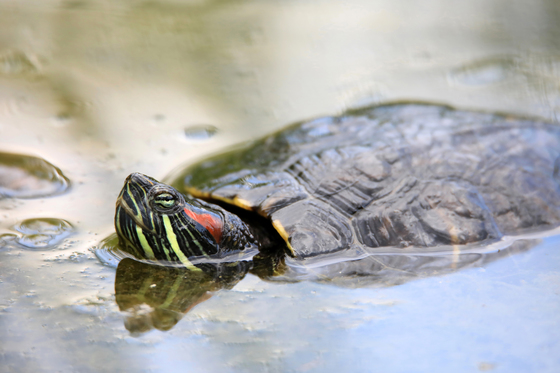 A turtlle and its reflection in a pond. Photo taken at Domaine Maizerets Quebec city