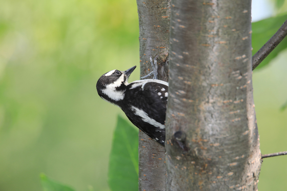 A Woodpecker between trees at Domaine Maizerets Quebec city