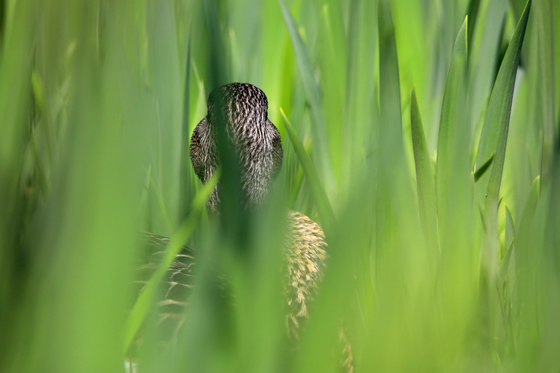 A female Mallard duck hidding in long grass at Domaine Maizerets Quebec city.