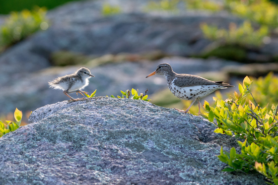 While out kayaking on our lake this summer, I discovered a family of Spotted Sandpipers on an island around our lake. I would check on them from time to time and always approached with caution and kept an appropriate distance using my 500 mm lens. Here's another capture of the adult and chick.