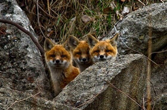 These three kits had just come out of their den to see what was up. Then we met. They did not run or hide for a bit then went back in for a nap.