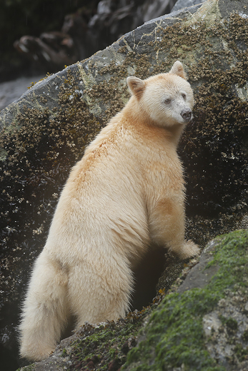 This female Spirit bear was eating barnacles at low tide.