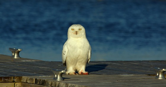 This snowy hang out on this dock for two days in April of this year. Not sure if she was tired on her way up north or just looking for food.