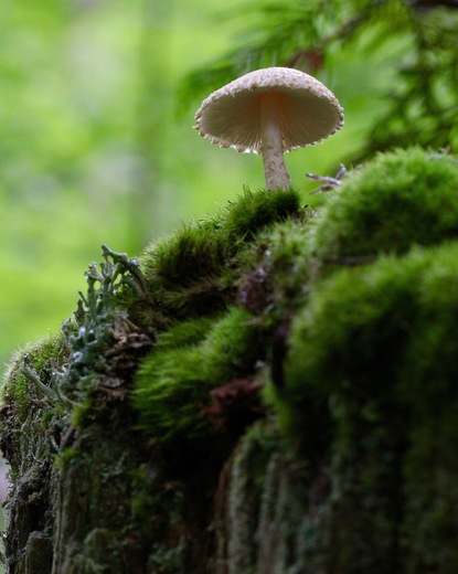 This lone mushroom was growing on an old cedar stump, it was raining that morning.