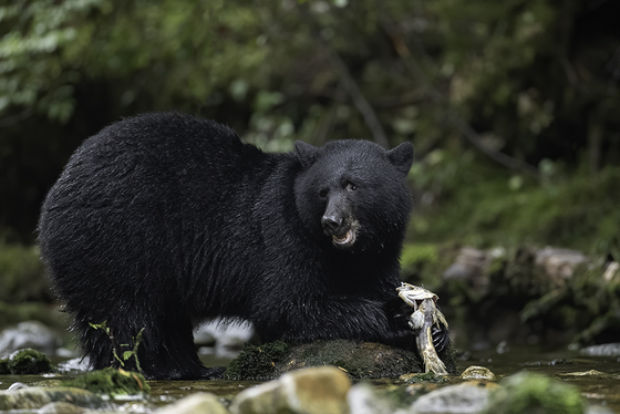 It's much easier to eat salmon when you lean on a rock and stick your bum in the air as this bear demonstrates.
