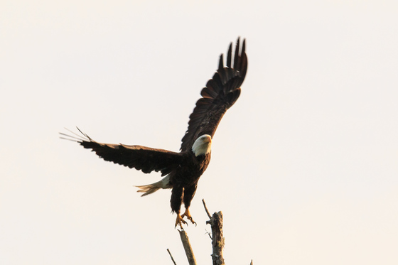 eagle takes of from it's perch on top of an old tree