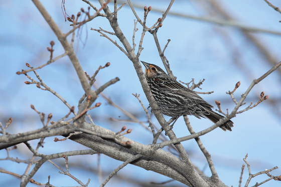 A female Red-winged Blackbird on a tree