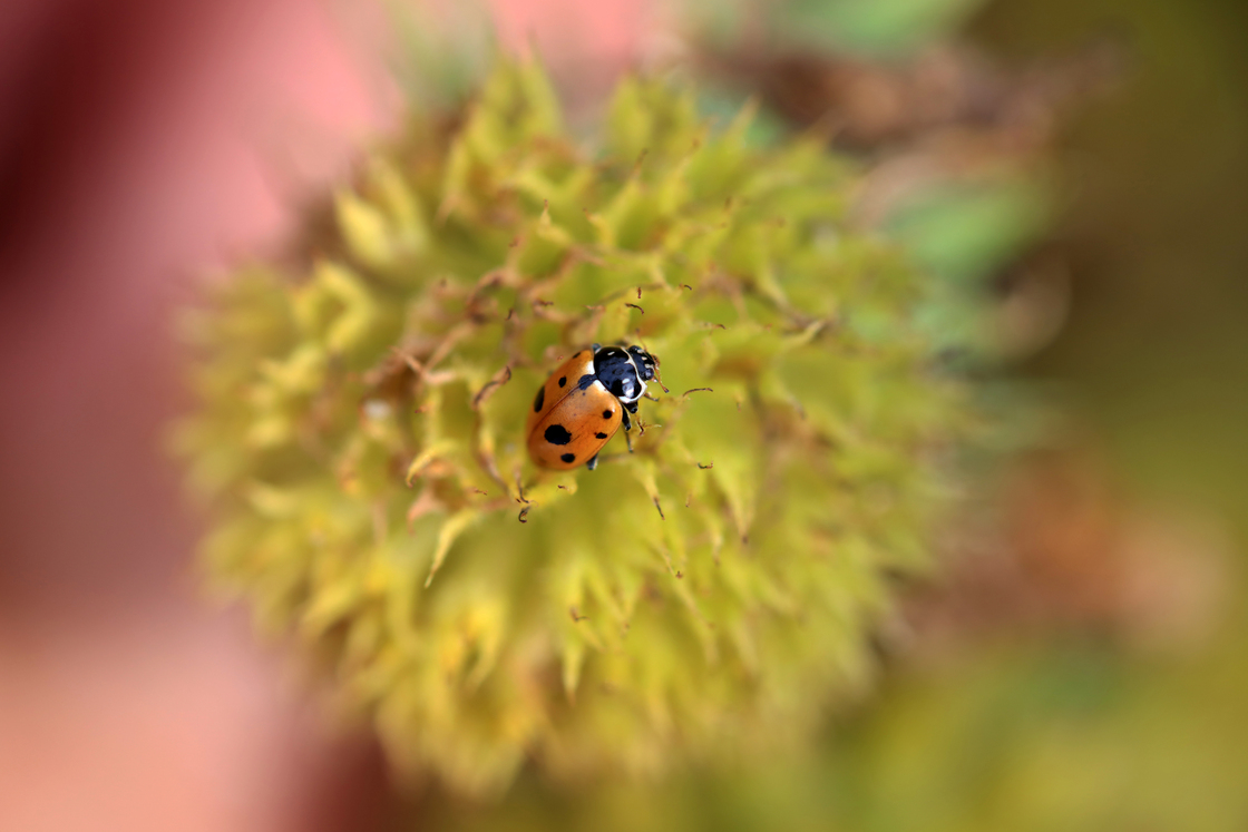 A macro shot of a Ladybug on a flower. Photo taken at a Botanical garden.