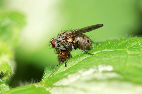 A macrophotoraphy of a fly capturing a little Syrphid. Photo taken in my backyard.