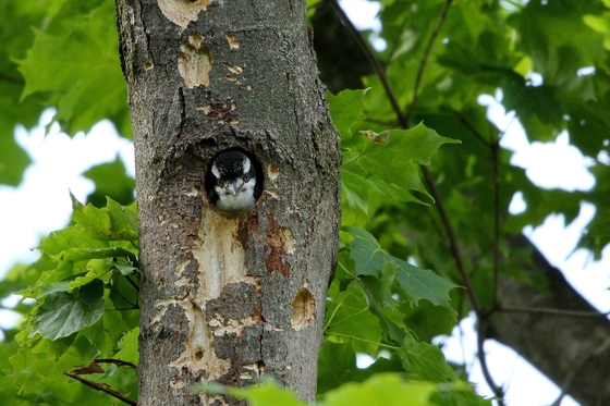I spotted this baby Hairy Woodpecker while I was hiking not far from my home. I thought it looked pretty cute just sitting there.