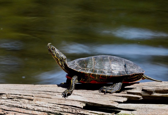 This Western painted turtle remained still for over ten minutes while the Demselfly on the turtles noise hatched from its nymph stage. I was able to capture the whole transformation.