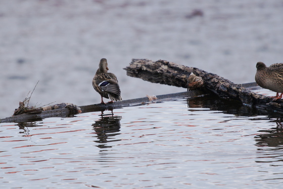 among the many waterfowls on the dam, ducks are mostly the one the like to stand right on the edge.