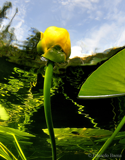 An underwater view of water lilies, Brohm Lake, BC