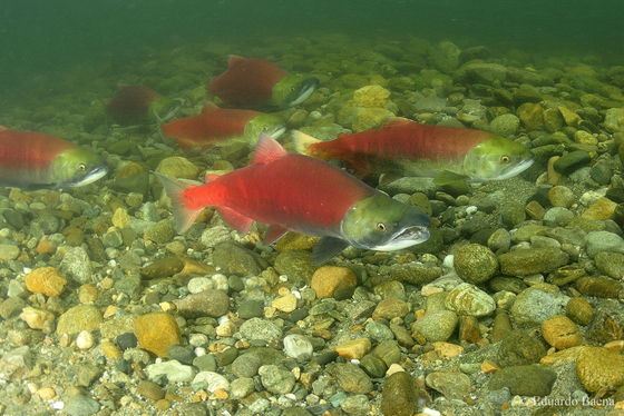 Sockeye salmon spawning in the Adams River, BC. Taken under permit from BC parks