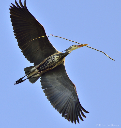 Blue Heron carrying sticks