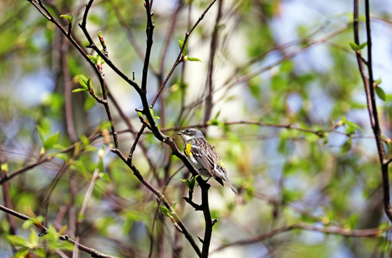 I had gotten a bird report that there were about five different types of Warblers at the arboretum in Guelph Ontario Canada and so I went the following day to try to find them. I found four different Warblers and this lovely female Yellow Rumped Warbler was one. The females are not quite as dazzling as the males but still beautiful with the bright yellow, charcoal gray and black and white plumage.
