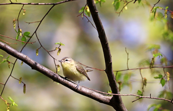 This small North American songbird is the most northernly breeding species of vireo. This is a bird of the treetops in young deciduous forests and is most obscure as the larger Red Eyed Vireo that is similar in appearance and song is seen more frequently. I was quite happy to see this small pale yellow cutie as it was a first for me.