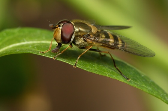 Just a Hoverfly (Syrphid fly) resting on a leaf in my garden.