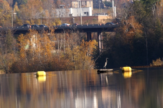 Lonely in the city, that heron stands on the edge of the Drummond little hydro dam. The highway and city in the back look near but they're not. The 600mm zoom makes the trick.