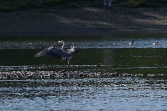Great blue heron in a yoga attitude