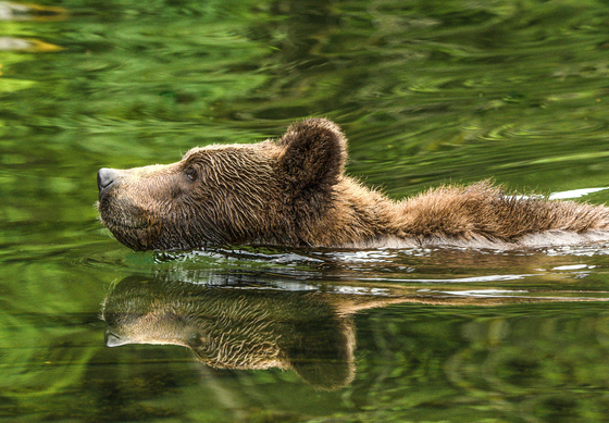 Male Grizzly swimming in The Estuary in The Khutzeymateen.