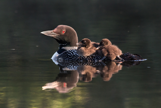 Commun loons family, at morning.