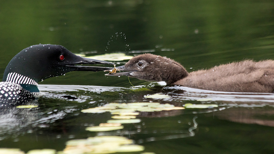 In Mauricie National Park. A whole art of transmitting from one beak to the other