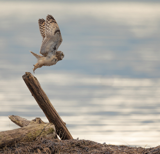 Short-eared Owl takes off before flying low over the salt marshes of Boundary Bay, BC. I was ready with a high shutter speed of 1/1600 to capture the flight.